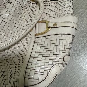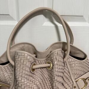 Cole Haan Women's Beige Blush Pink Genevieve Woven Denny Satchel Bag. Does have have light stain inner side and light wear See Pics. Pre-owned in good condition.