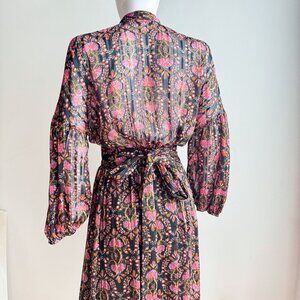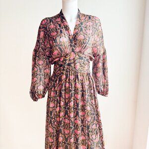 Zara Dark Florals Wrap Long Sleeve Chiffon Maxi Dress S.