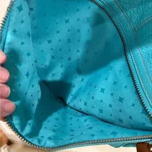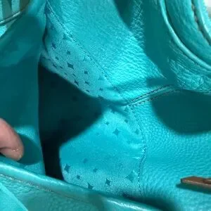 Soft Pebbled Leather, lemon yellow and turquoise blue. Yellow comes with key.