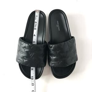 Louis Vuitton Jumbo Flatform Monogram Mules Black Leather Slip On Sandals 38