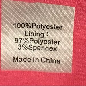 Material: 100% Polyester, Lining: 97% Polyester, 3% Spandex