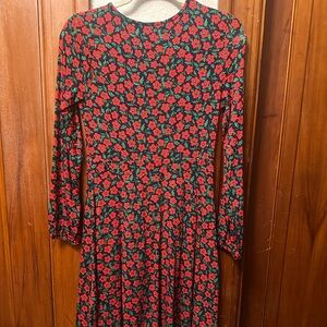 Chic Boden dress with vibrant red floral print. Long sleeves and flattering fit. Ideal for any occasion.