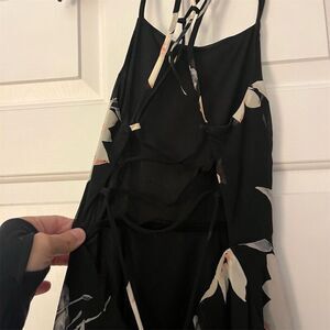 Elevate your party wardrobe with this stunning Lulus skater dress, perfect for any cocktail event or night out. The dress features a captivating floral pattern on a classic black backdrop, ensuring you stand out in any crowd. Its short length and plunge neckline add a touch of allure, while the strappy back detail offers a modern twist. Crafted from high-quality fabric, this dress promises comfort and style. Whether you're attending a wedding, a birthday bash, or a festive gathering, this dress is your go-to choice. In excellent used condition.