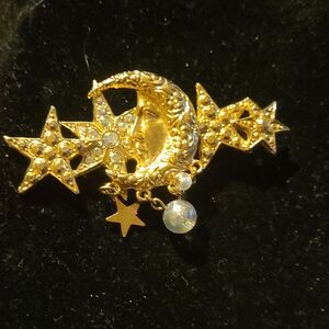 Gold Moon and Stars Brooch Kirks Folly
