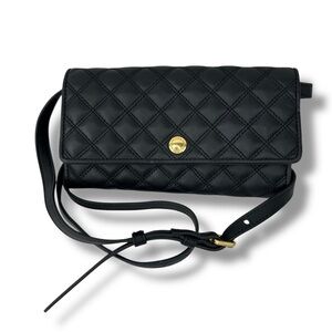 COLE HAAN Black Leather Quilted Crossbody Bag Wallet