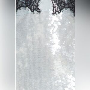 The Ellen Sequin Dress is a strapless midi dress featuring stunning sequins and delicate lace details on the bodice, evoking the sensuality of lingerie. Perfect for making a statement at any special occasion. Shown here in Ice Blue.