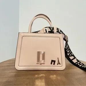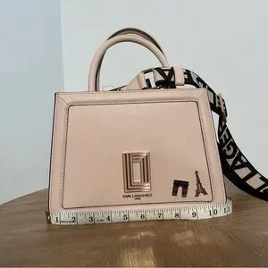 Karl Lagerfeld Paris Pink Structured Satchel Handbag with Logo Strap
