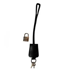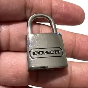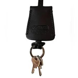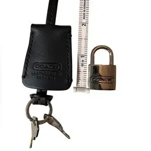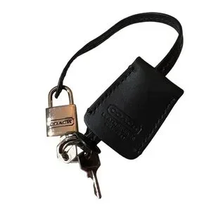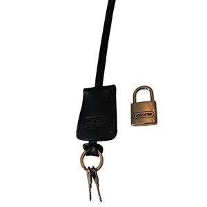 Coach Silver Padlock and Black Leather Clochette with two keys