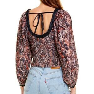 NWT Free People Dare Me Long Sleeve Velvet Blouse Size XS