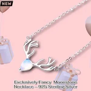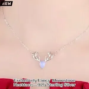 New Exclusively Fancy Deer Antler Moonstone Necklace – 925 Sterling Silver