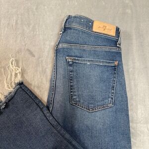 7 For All Mankind Jeans Womens Size 27 Cropped Alexa Blue Distressed Raw Hem