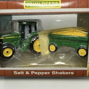 Vintage Enesco Ceramic 1998 JOHN DEERE Salt and Pepper Shakers NEW in Box