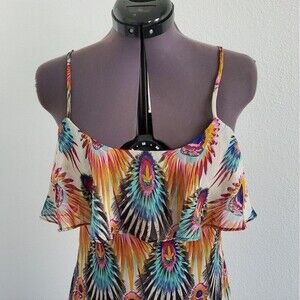 Buffalo Women’s Dress XS Black Orange Blue Peacock Print Spaghetti Strap Boho