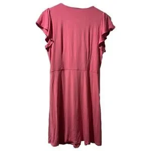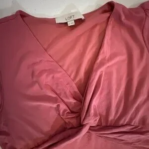 Women’s LOFT Coral Knit Dress Front Twist Size Medium Fit & Flare Knee Length