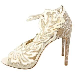 Jimmy Choo White Bridal Heels Strappy Floral Lace Crystal Wedding Pump EU39.5