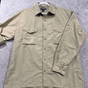 Lands End Mens L Long Sleeve Button Up Shirt Khaki Tan Utility Ripstop Outdoor