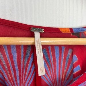 Free People - Beneath The Sea Red Boho V Neck Lightweight Blouse Size XS