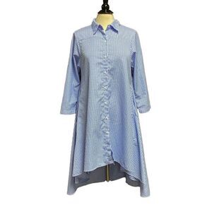 Blue Gingham Check Button Down Batwing Tunic Dress Size Small NEW