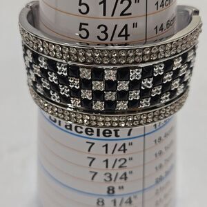 This beautiful bracelet features a chic black and silver checkered design with sparkling rhinestones