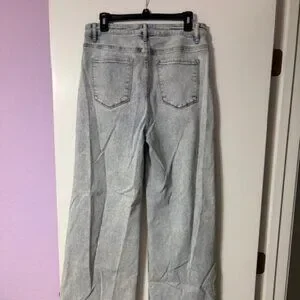 RISEN JEANS High Rise Distressed Knee, Relax Fit Flare Jean (13/31) Light Wash