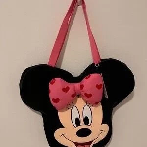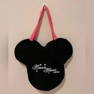 Charming Minnie Mouse tote bag. Features iconic pink bow with white polka dots. Perfect for Disney fans.