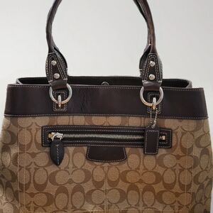 COACH 2010 Signature Tote Bag. Brown Signature C . BRIGHT YELLOW INTERIOR