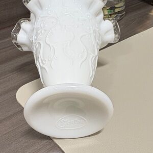 Fenton White silver crested Ruffled Glass Vase