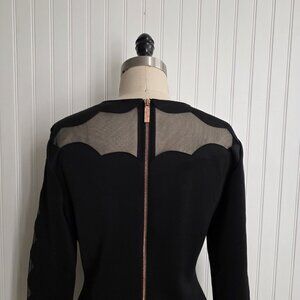 TED BAKER SERENTY SCALLOPED ILLUSIONS BLACK BODYCON DRESS sz 4/ 10 US