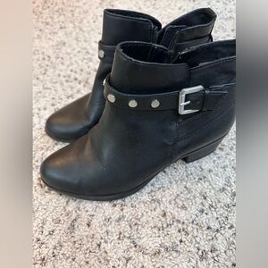 Naturalizer Fenya Leather Black Ankle Boots with Buckle and Studs Detail