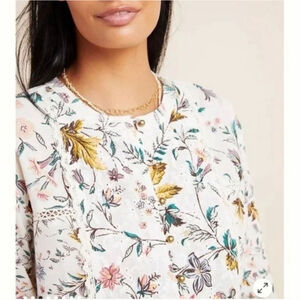ANTHROPOLOGIE Ginevra Lace Babydoll Blouse M White Floral Long Sleeve