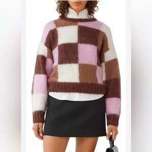 & Other Stories Mohair Wool Checkered Fuzzy Knit Sweater Scandi Small