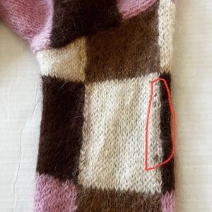 Stay cozy and chic in this & Other Stories mohair and wool blend sweater. Featuring a bold colorblock checkered pattern and a soft, fuzzy knit texture, this piece is the epitome of Scandi-style. The mohair gives it a beautiful halo effect, while the wool ensures warmth. A perfect statement piece for layering during colder months.