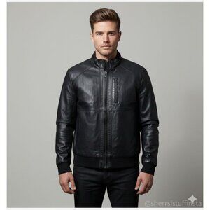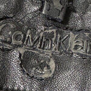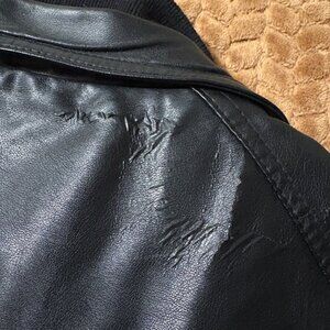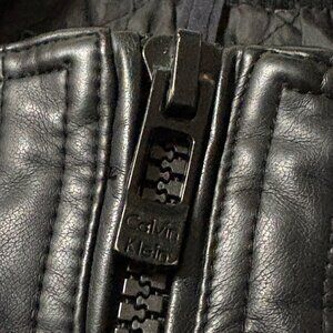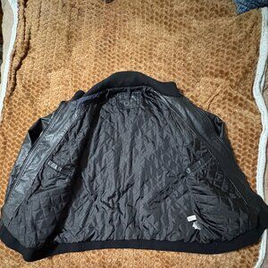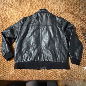 Calvin Klein Black Faux Leather Mens Bomber Jacket Zipper Pockets XL