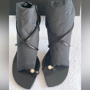 Black Leather And Gold-Tone Hardware With Crystal-Embellished Buckle And Toe Ring