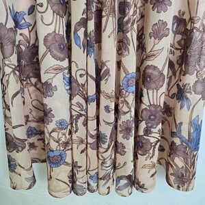 Flowers, floral, botanical, AOP, boho, bohemian, vintage, vtg, cottagecore, cottage, prairie, whimsical, prairie, romantic, feminine, flowy, midi, a-line, neutral, earth tones, muted, beige, brown, spring, summer, casual, georgette