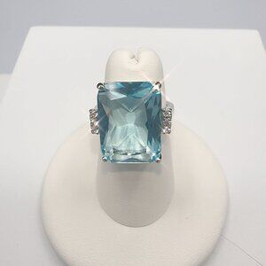 Aquamarine CZ Silver Tone Cocktail Ring Size 9