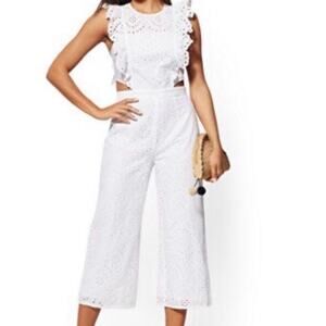 New York & Company: Eyelet Jumpsuit Optic White Women’s XL