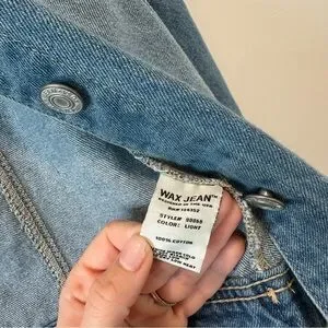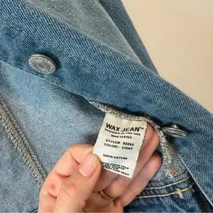 Wax Jean Vintage Denim Jacket Mid Blue Wash Distressed Casual Layers Medium VTG