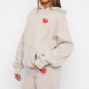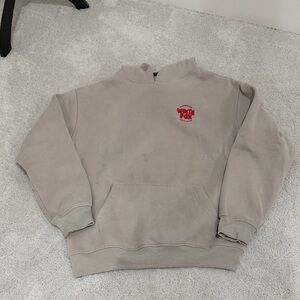 Cozy sweatshirt. Features red logo on chest. Perfect for casual wear.