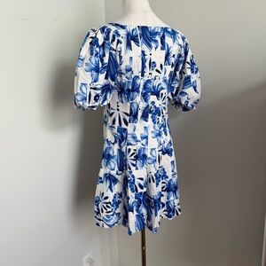 NWOT House of Harlow 1960 Blue Floral Puff Sleeve Off-Shoulder Mini Dress 2