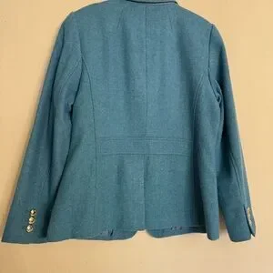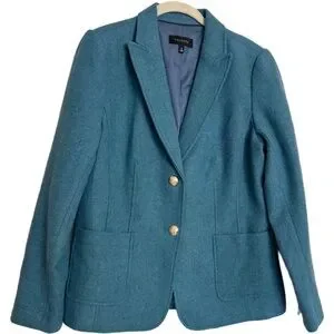 Talbots Jacket Blazer Teal Career Lined Gold Crest Buttons Wool Blend Size 10