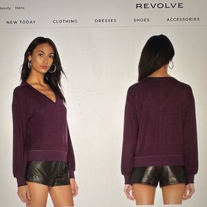PAIGE Arizona Puff Sleeve Sweater Top Deep Purple