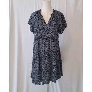 The Anthropologie Women's Navy Blue Dotted Robin Tiered Mini Dress in size Small is a stylish and casual option for the summer and spring seasons. This dress features a geometric pattern with a V-neck and flutter sleeves, giving it a feminine and playful look. Made from viscose fabric, this dress is easy to wear and perfect for a day out or a casual occasion. The layered accents add a touch of interest to the short, tiered length of the dress, making it a versatile addition to any woman's wardrobe.
