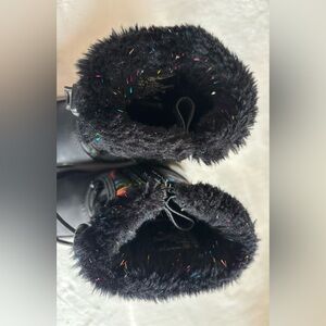 Stylish kids boots by totes. Black with multicolor accents. Cozy fur lining. Durable and comfortable.