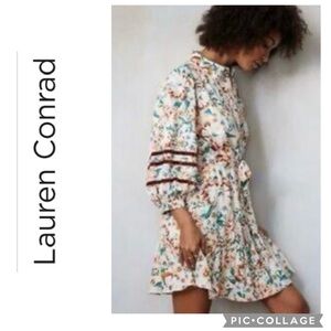 LC Lauren Conrad Floral Print Puff Sleeve Mini Shirt Dress. Pleated back. Elastic Waist. Three Velvet Bands on Sleeves. Lined. Ruffle Bottom. Cute❣️