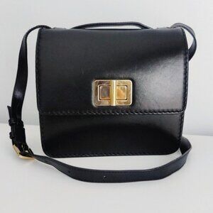 Chloé Louise Box Black Leather Crossbody Bag Gold Turnlock Vintage Authentic
