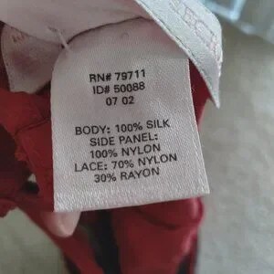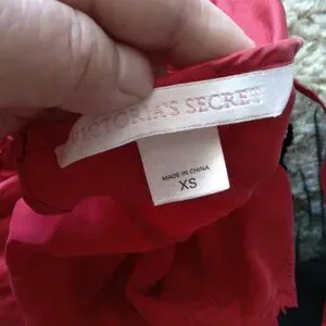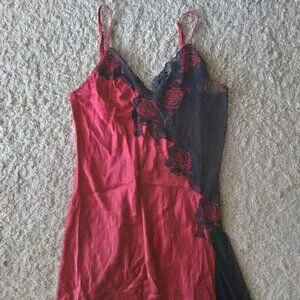 Vintage Y2K Victoria's Secret red and black maxi slip dress with adjustable straps. Pink label. Has a v-neckline with red and black floral lace details near the neck and going down the side. The left side is black mesh and is sheer. Size XS. Made of 100% silk, while mesh is made of 100% nylon. In good condition.
