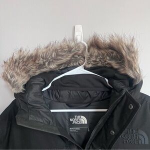 Durable, 550-fill insulated hooded jacket with waterproof exterior will keep you warm and dry while exploring the city streets this winter. A neck gaiter is built into the attached hood of this North Face waterproof jacket that features detachable faux-fur trim.