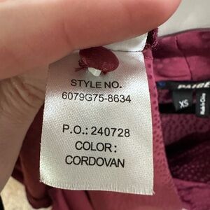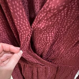 Elegant deep red blouse with subtle patterns. V-neck design by PAIGE. Ideal for versatile styling.
