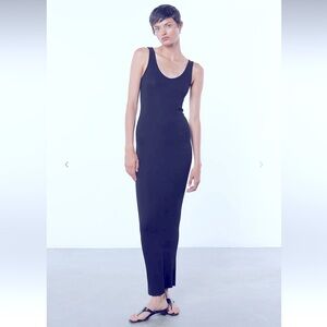 This sleek black maxi dress offers a timeless and sophisticated look. Perfect for any occasion, it provides a flattering fit and effortless style.